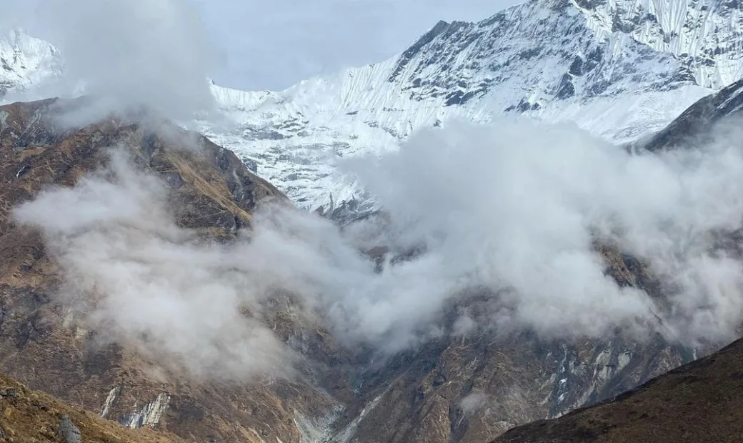 前往安纳普尔纳南部大本营:从德乌拉利出发,旅行者将前往安纳普尔纳南部大本营。这是一段长约6-7小时的徒步旅行,途中将经过美丽的高山草地和岩石峡谷。